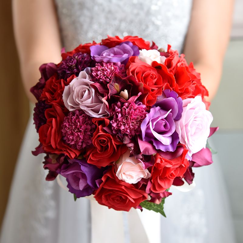 Red, fuchsia & purple bouquet. Wedding bouquet silk flower bridal bridesmaid purple lavender fuchsia hot pink. Purple wedding bouquets light purple flower arrangements floral wreath wreaths flowers vintage decor bouquet of flowers. If lush florals and sequins call your name, today's shoot from elyse hall is for you. As an ornament, you can choose violet and purple ribbons, balloons. There are 109459 red purple wedding for sale on etsy, and they cost $17.59 on average. You can choose from floral leaves, flowers, carnations, or even tulips. This red wedding bouquet, complete with a long gauzy ribbon and trailing greenery, just screams tropical. Red pink wedding flowers crystal pearl artificial roses bridal brooch bouquet. Premium artificial wedding flowers that don't look cheap. Summer wedding bouquets purple wedding flowers pretty flowers bouquet wedding dahlia bouquet spring bouquet boquet wedding bells loving this gorgeous summery bouquet of hot pinks and purples, and the pretty flowergirl garland. Red bouquets are a popular choice for wedding flowers since red is a universal symbol of romance. Diy wedding wedding favors wedding bouquets wedding ceremony wedding ideas destination wedding planner wedding planning wedding centerpieces these reception centerpieces are enhanced using florals in red and purple, with hanging manzanitas and sequined linen.