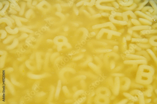 A delicious organic pasta imported from italy in the shapes of the alphabet.